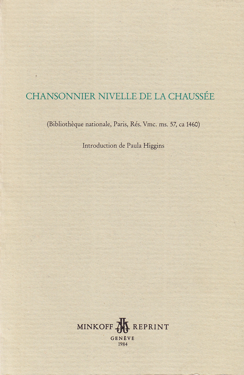 Chansonnier provenant de la collection G. Thibault et récemment entré à la Bibliothèque nationale. Il contient 70 pièces dont certaines de Busnois, Ockeghem, Dufay, Binchois, Fédé et sept unica de Jean Delahaye comprenant notamment une chanson sur un texte de F. Villon.