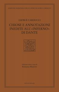 Che il testo sia la prima preoccupazione di Carducci commentatore dei classici, è noto; e lo dimostrano ancor più queste chiose e annotazioni private, frammentarie e composite all'"Inferno" dantesco, con ogni probabilità stratificate nell'arco di un trentennio. Già in una lettera del 1874 a Lidia lo stesso Carducci precisava il suo modus operandi nelle vesti di professore: nelle sue lezioni sui classici era solito scrivere "la sola parte filologica"; per la "parte estetica" si lasciava andare a dire "cose improvvise", ossia, comprendiamo, si affidava ai suoi straordinari acume logico e talento intuitivo, alla sua erudizione di letterato e alla sua ipersensibilità di poeta. Carducci fece interfoliare con due carte l'"Inferno" e il "Purgatorio" dichiarati da Brunone Bianchi (Le Monnier 1854). Nelle carte aggiunte alla prima cantica le facciate annotate sono trecentoundici, le facciate mute centosessantasette. I canti sono disparmente annotati. Ma le duecentoquaranta pagine del testo a cura del Bianchi - ivi comprese le note - sono pressoché tutte chiosate con varianti in margine, in interlinea.