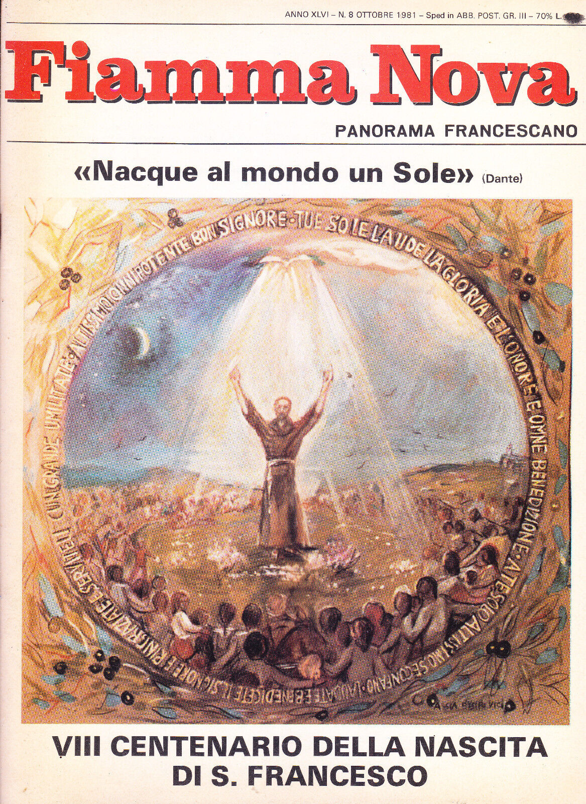 Fiamma Nova. Panorama francescano. Anno XLVI - n. 8 Ottobre 1981. "Nacque al mondo un Sole" (Dante). VIII centenario della nascita di S. Francesco