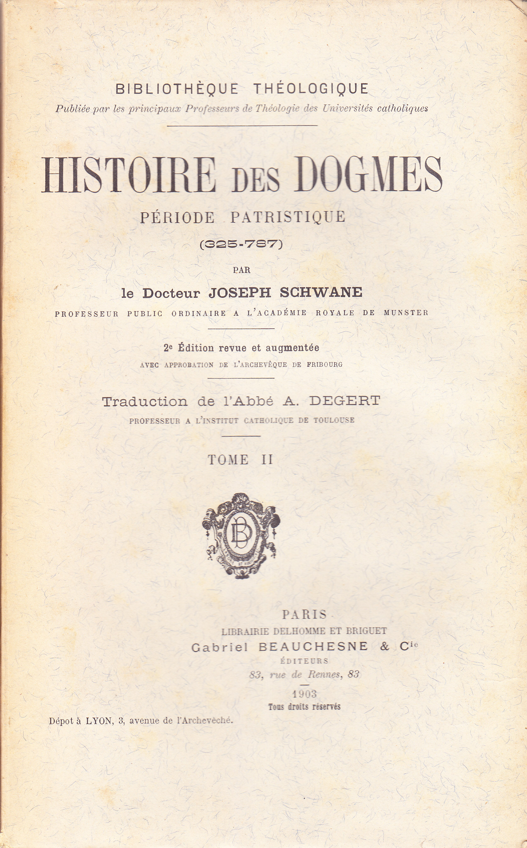TITOLO/DENOMINAZIONE: Histoire des dogmes Tome II: Période patristique (325-787)