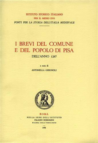 TITOLO/DENOMINAZIONE: I brevi del Comune e del Popolo di Pisa dell'anno 1287 PREZZO : EUR 144,00€