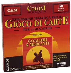 L'estensione "Cavalieri & Mercanti" è indirizzato ai giocatori che conoscono bene il gioco di carte "I Coloni di Catan" e che sono alla ricerca di nuove avventure. Numerosi sviluppi di colonie aprono nuove prospettive. Grazie alla "Fortezza", il reclutamento di Cavalieri diviene meno costoso. La "Piazza del Torneo" spinge questi Signori a dimostrare maggiore zelo. La nuova "Milizia Contadina" è molto potente e dispone di grandi riserve di grano. Potete opporvi alla "Spia" grazie alla "Torre di guardia", e la "Postazione di Dogana" migliora le vostre entrate d'Oro. Il "Palazzo" vi permette di riprendere in mano delle carte precedentemente scartate. La presenza dei Cavalieri è minacciata da "Lady Imelda", e potete grazie ai "Briganti" spogliare il vostro avversario.