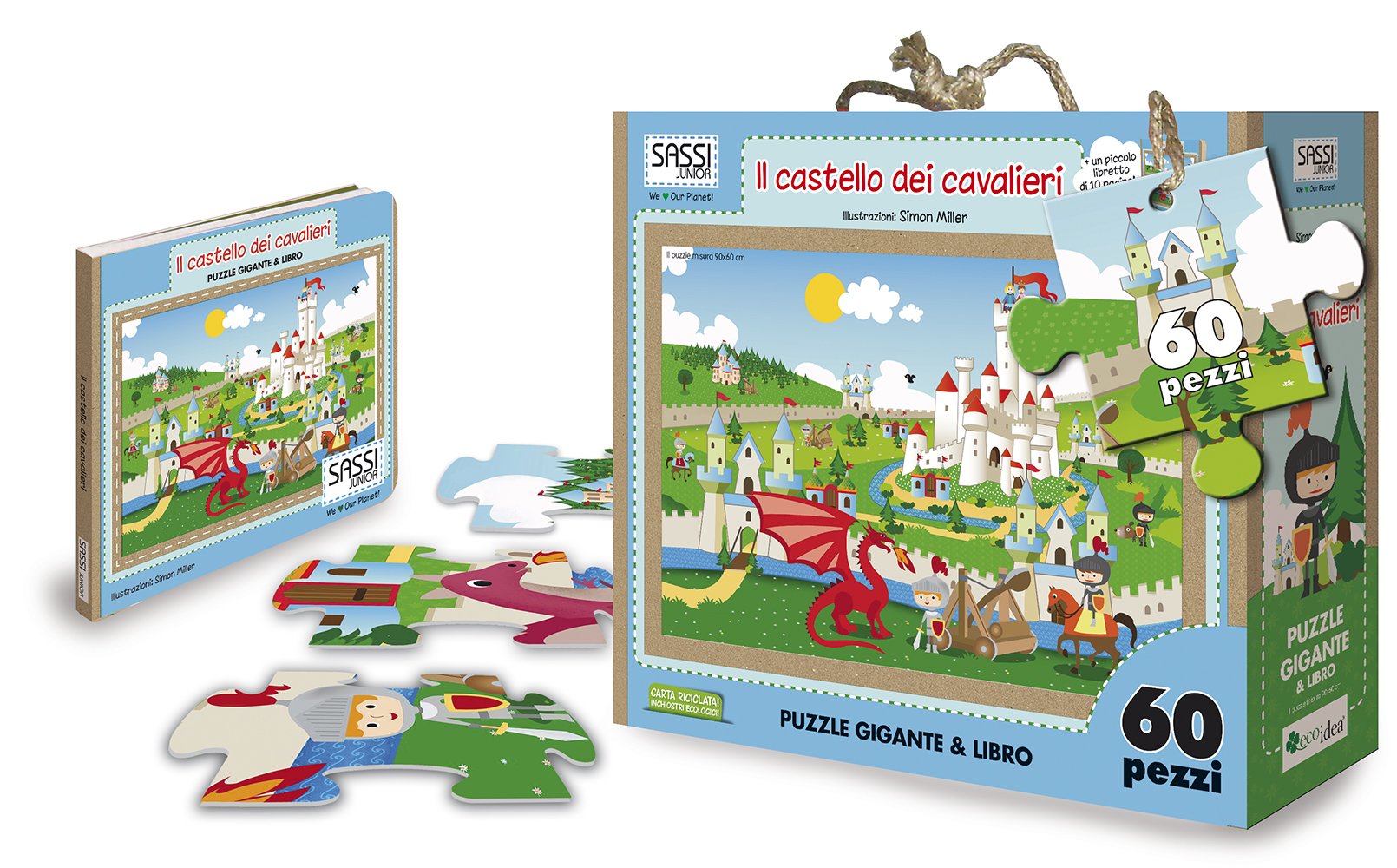Apri la grande valigiona ed entra nel magico mondo di un castello pieno di cavalieri! Ti aspetta un magnifico puzzle gigante da comporre per imparare a conoscere tutti i segreti di una fortezza medievale: guarda quant'è grande il ponte levatoio e quanto sono alte le torrette di avvistamento! Ammira le splendenti armature dei cavalieri e i finimenti dei loro cavalli! Leggendo il libretto con le storie in rima scoprirai le avventure di un mondo pieno di magia!