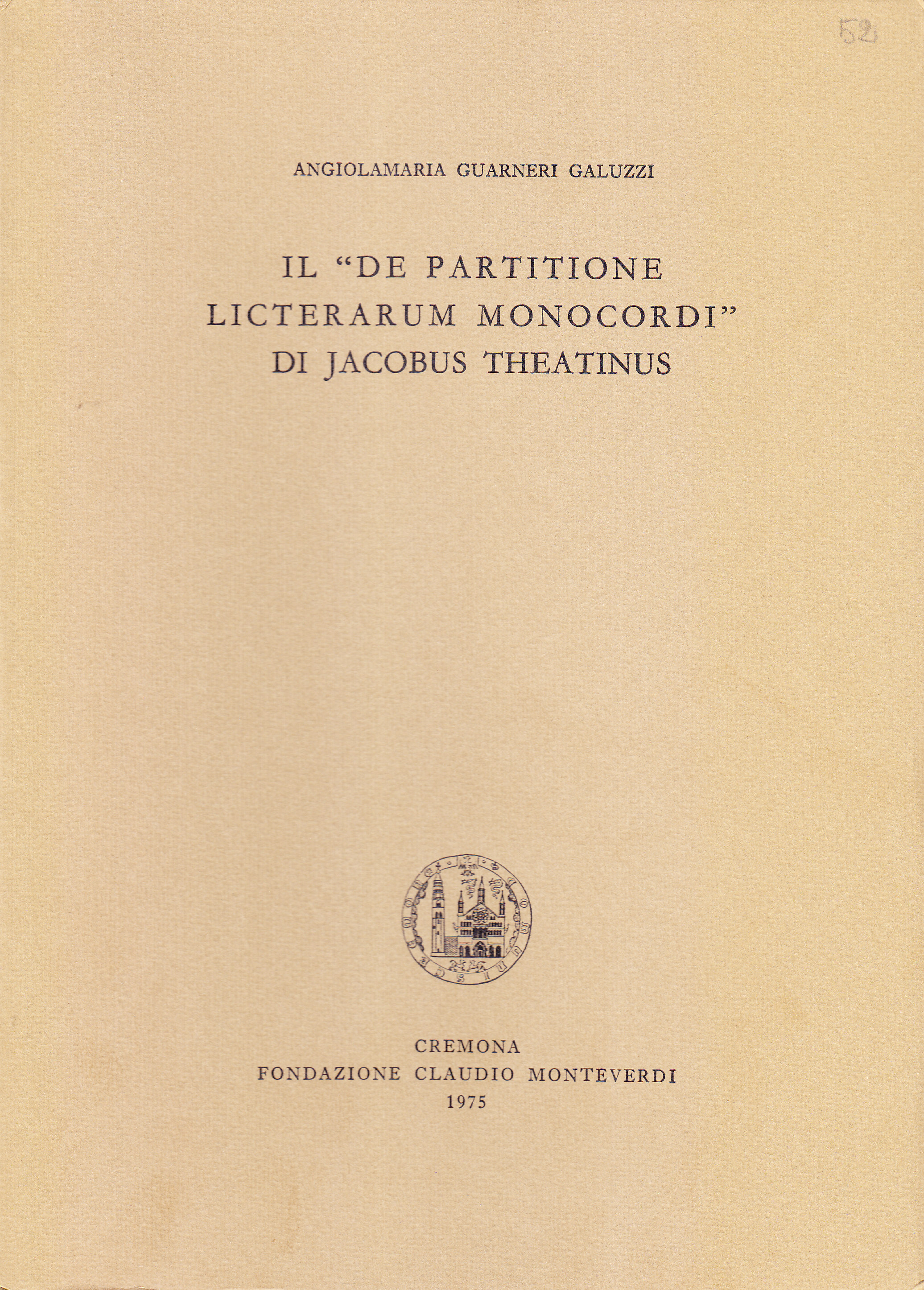 Il "De partitione licterarum monocordi" di Jacobus Theatinus