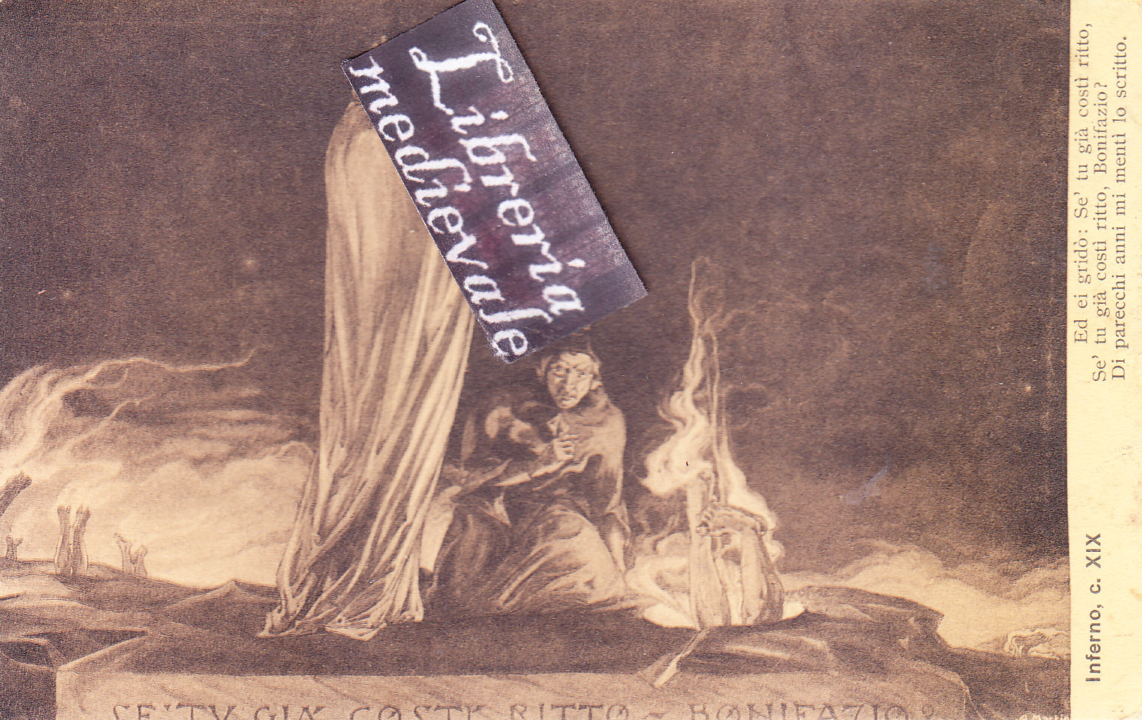 TITOLO/DENOMINAZIONE: Inferno, c. XIX. Ed ei gridò: Se' tu già costì ritto, Se' tu già costì ritto, Bonifazio? Di parecchi anni mi mentì lo scritto - CARTOLINA