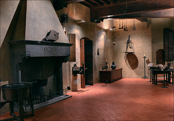 Cartolina raffigurante la cucina di Palazzo Davanzati, Firenze, III piano (secolo XIV)