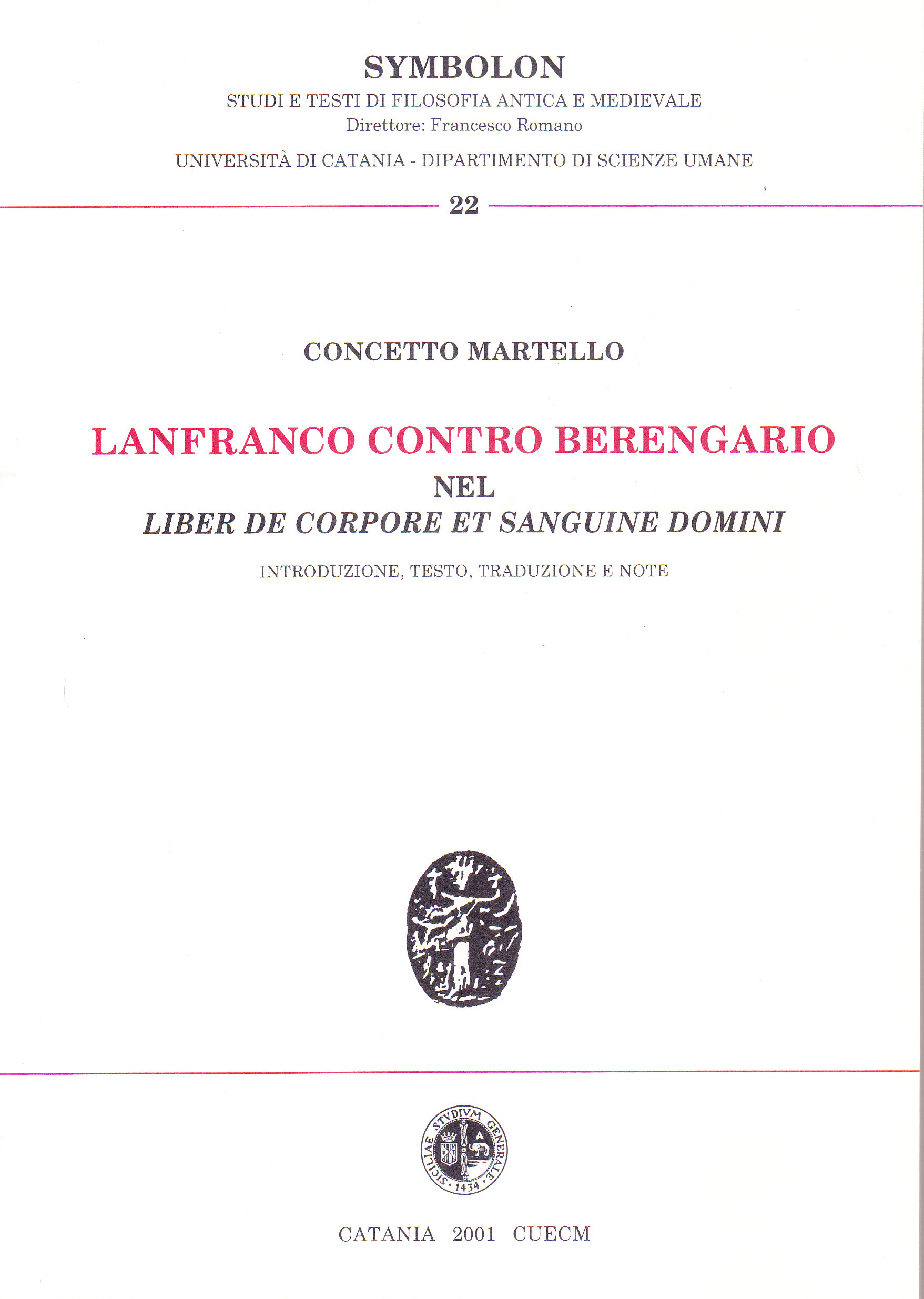 Martello analizza criticamente la questione filosofica e teologica che accompagnò la controversia eucaristica sorta tra XI e XIII secolo. Per fare questo lo studioso si sofferma in particolare su due testi: il primo è il Liber de corpore et sanguine Domini di Lanfranco di Pavia, che contiene una risposta polemica al secondo dei testi presi in considerazione, lo Scriptum contra Synodum di Berengario di Tours, a sua volta polemicamente legato al Concilio di Roma del 1059 e alle sue deliberazioni.