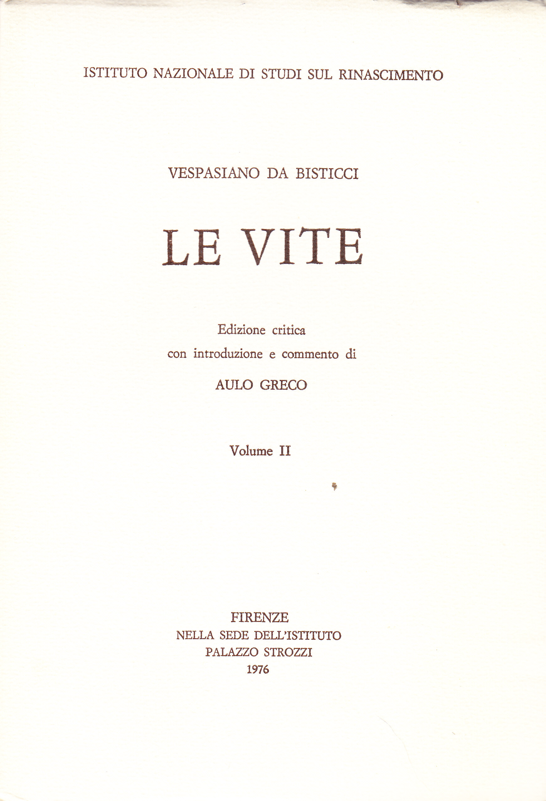439 Proemio di Vespasiano nel Comentario di più vite dallui composte, mandate a messere Nicolò degnissimo vescovo di Pistoia