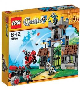 Prendi la mira e fai fuoco con le tue armi! Le forze del Dragone hanno assaltato il corpo di guardia con la loro enorme catapulta. Rispondi al fuoco dalla torre di guardia con la catapulta dei cavalieri del re! Ferma il Cavaliere del Dragone sul suo cavallo corazzato mentre cerca di attraversare la porta del castello! Include 4 minifigure: 2 cavalieri del re, un cavaliere del Dragone e un soldato del Dragone, con armi e accessori.