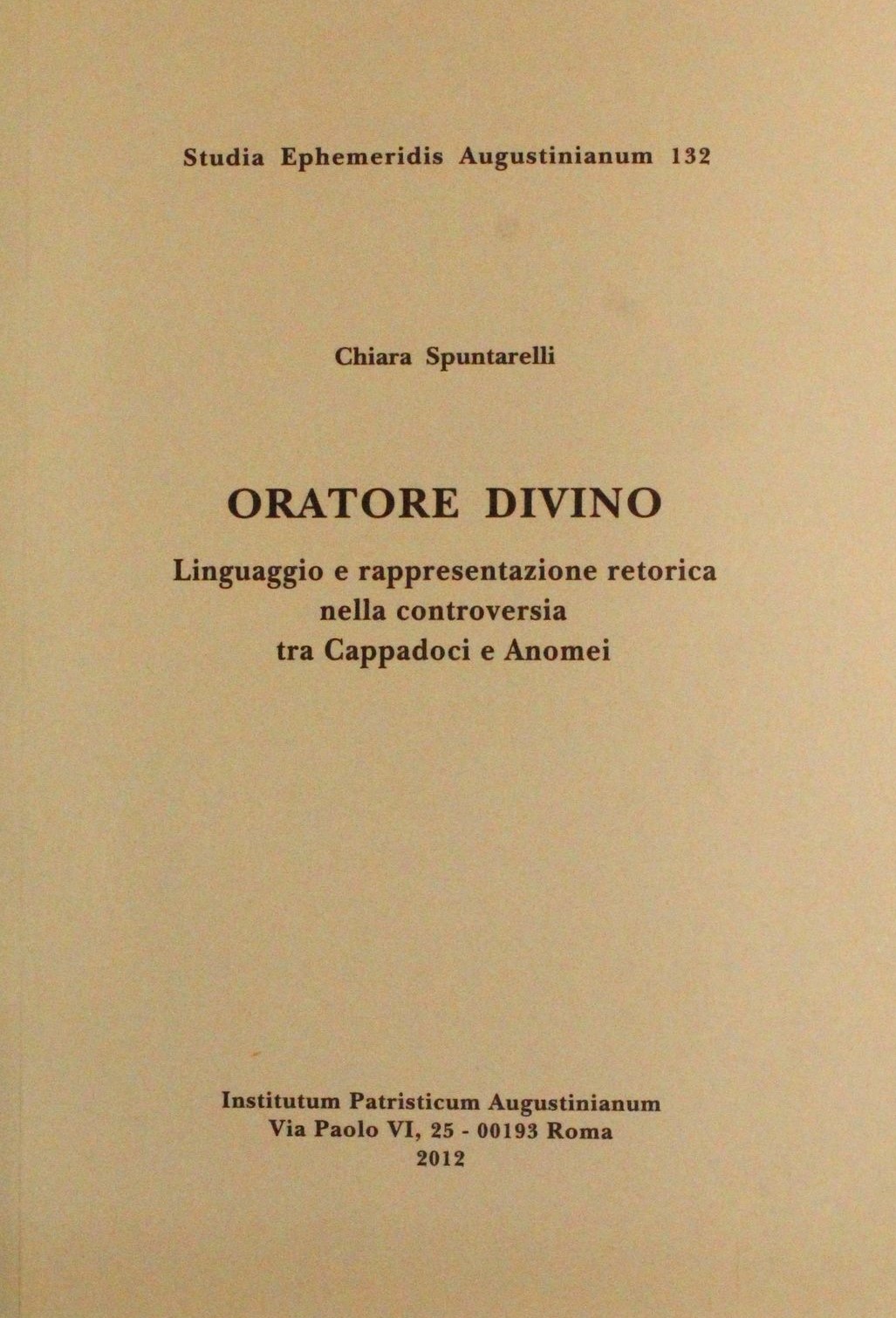 Oratore divino. Linguaggio e rappresentazione retorica nella controversia tra Cappadoci e Anomei