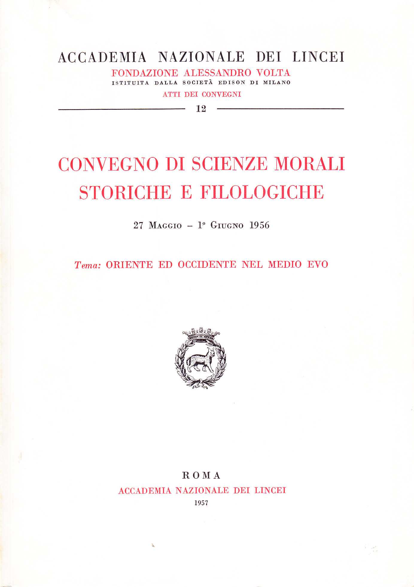 Atti del Convegno di Scienze Morali Storiche e Filologiche (27 maggio -1° giugno 1956)