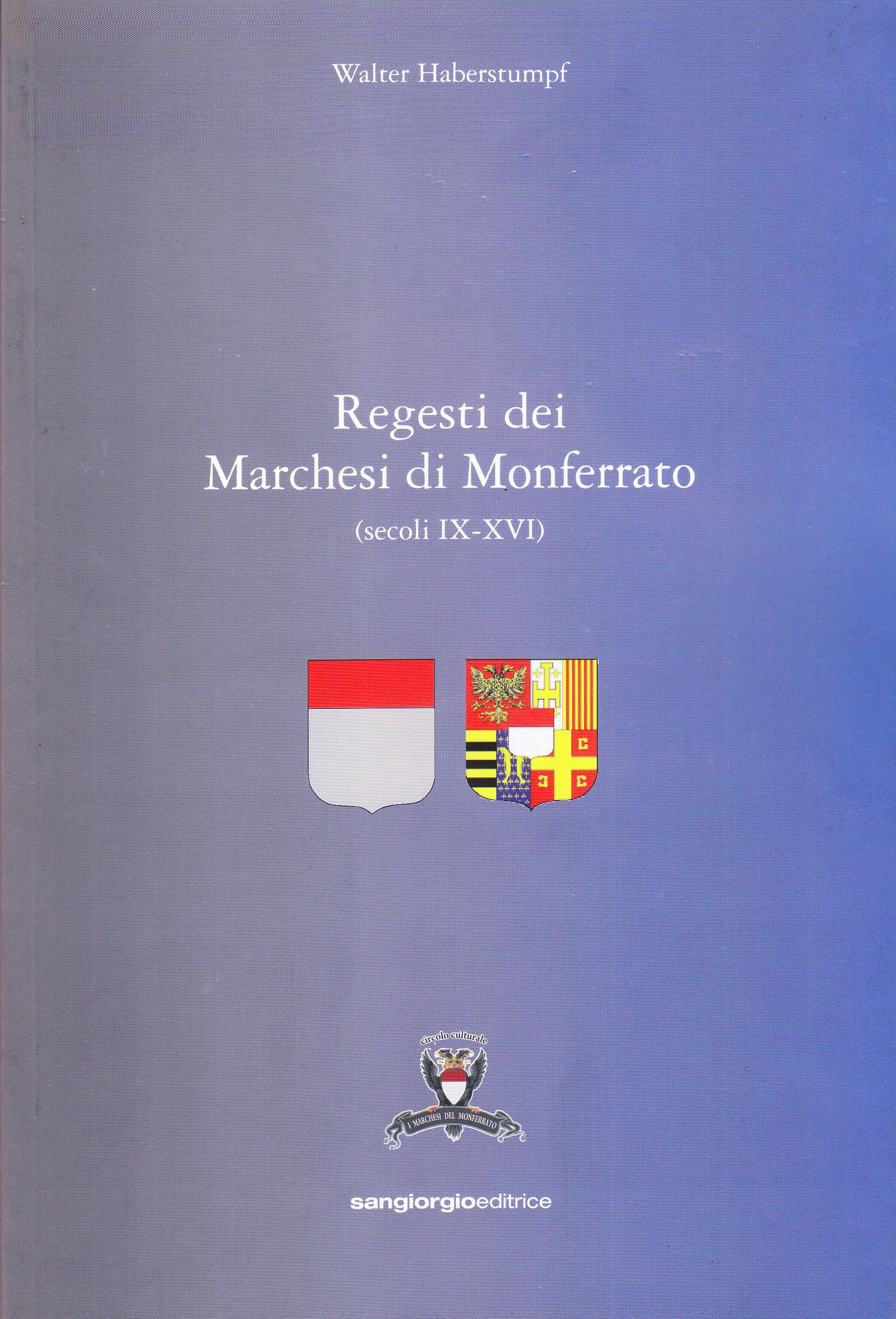 L'esistenza di un grandissimo numero di documenti inerenti ai marchesi monferrini, di stirpe aleramica e paleologa, da sempre ha indotto gli studiosi ad auspicare la pubblicazione di regesti: un progetto, in realtà, già risalente alla fine dell'800. Dopo quasi tre lustri di lavori e di ricerche si pubblica una prima raccolta, una sorta d'inventario ragionato, di oltre 1500 regesti relativi al Monferrato sia per gli atti riguardanti la Lombardia e l'Europa sia per quelli legati alle imprese oltremarine dei suoi marchesi. Raccolta non certo esaustiva, aliena da specifiche finalità paleografiche o diplomatiche, ma che non può non configurarsi quale utile strumento per gli studiosi, e tale da fornire una sorta di piccola guida per chi desideri orientarsi nelle complesse e affascinanti vicende dei marchesi di Monferrato.