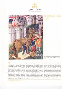 Scheda con spiegazione + 2 documenti (riproduzioni) ripiegati: Benoît de Saint-Maure: Roman de Troie, Biblioteca Apostolica Vaticana, Reg. lat. 1505, f. 23rv; Benoît de Saint-Maure: Roman de Troie, Biblioteca Apostolica Vaticana, Reg. lat. 1505, ff. 141r-142v. Manca il terzo documento (Raoul Lefèvre: Recueil des Histoires de Troie, Biblioteca Apostolica Vaticana, Pal. Lat. 1962, f. 224rv)