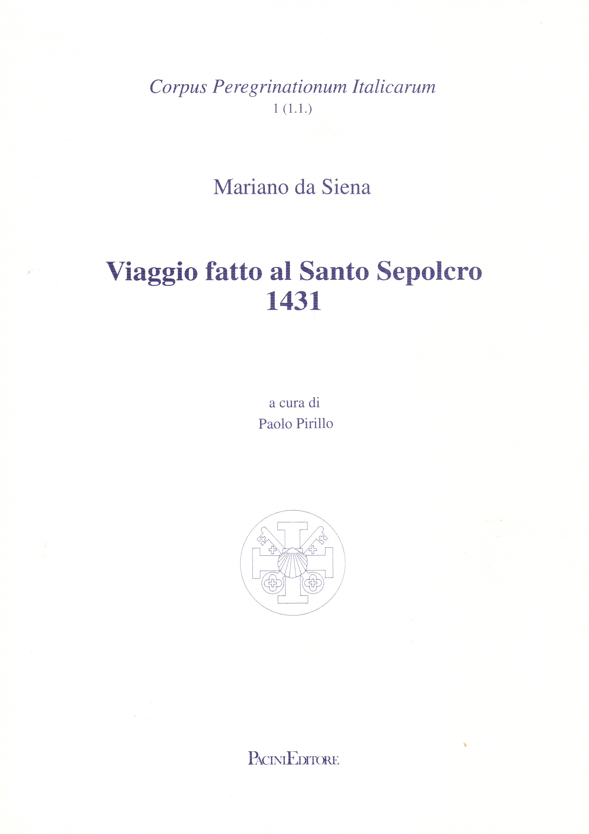 Il volume è dedicato al viaggio in Terrasanta intrapreso da Mariano di Nanni da Siena, un testo assai noto che era purtroppo reperibile solo in «vetuste e inutilizzabili» edizioni. In appendice Viaggio di Gaspare di Bartolomeo.