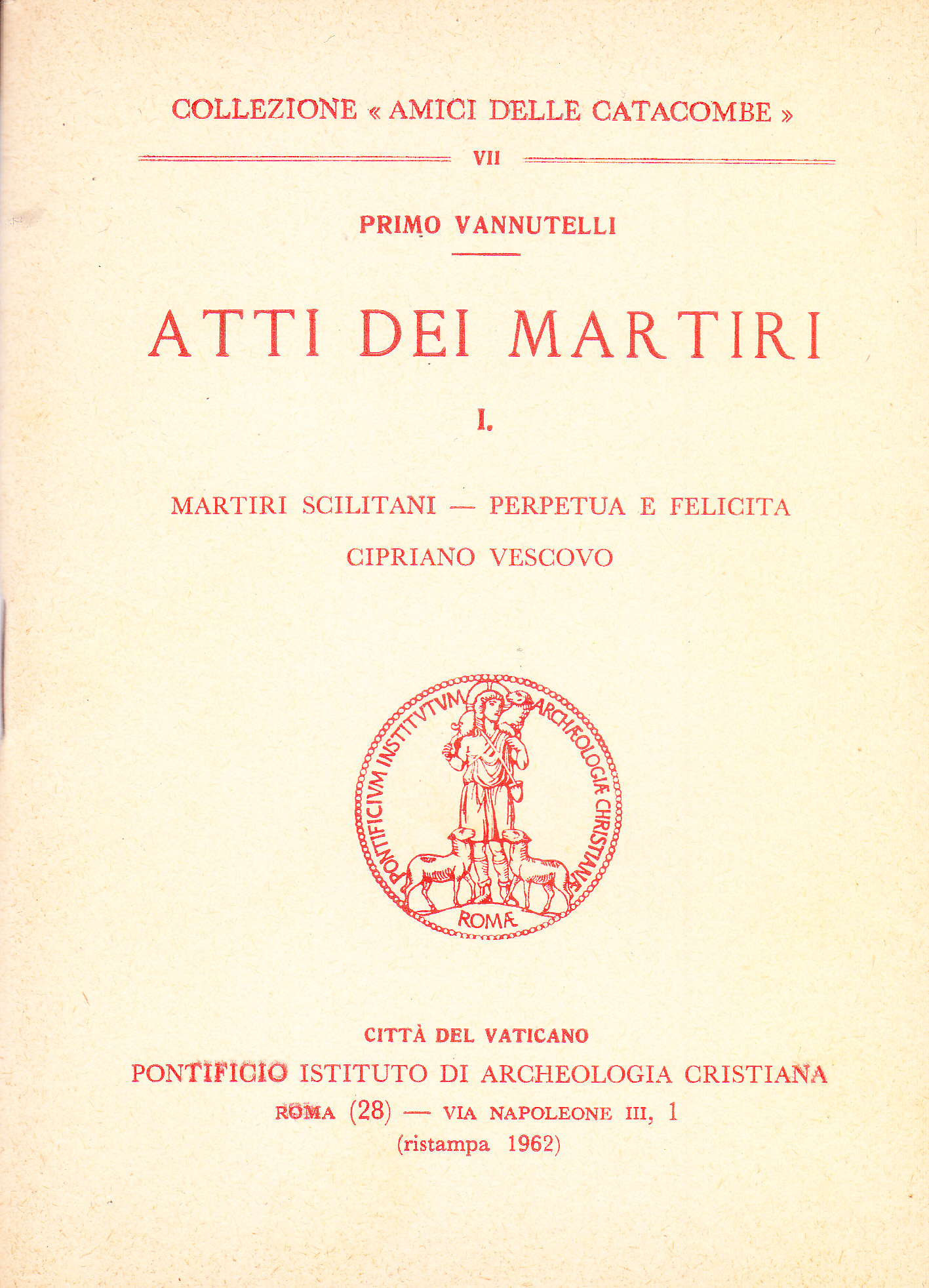 Indice: pag. 3 Introduzione 6 Acta Martyrum Scilitanorum 14 Passio Sanctarum Perpetuae et Felicitatis 58 Acta Proconsularia Sancti Cypriani