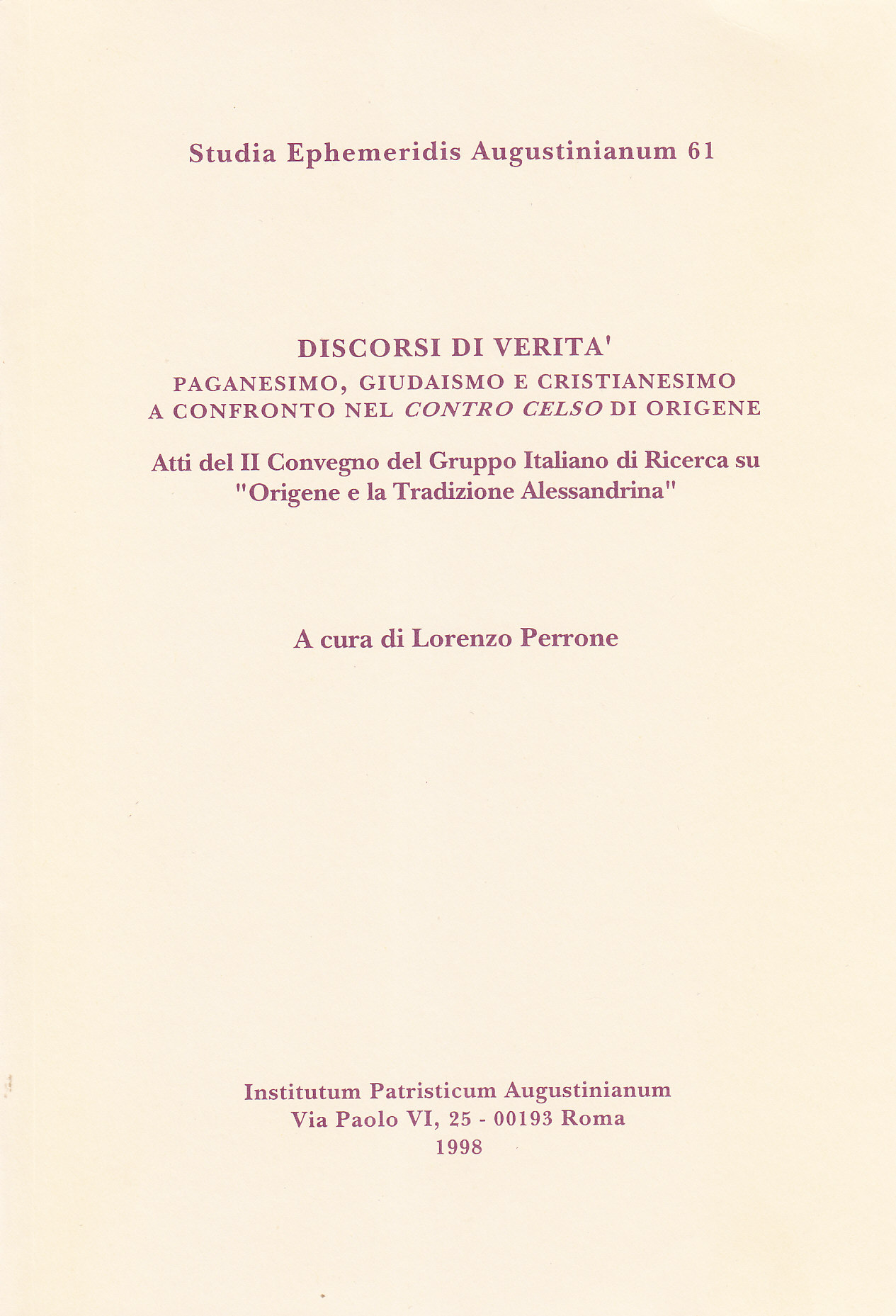 171 M. Rizzi, Problematiche politiche nel dibattito tra Celso e Origene - Risposta di G. Filoramo