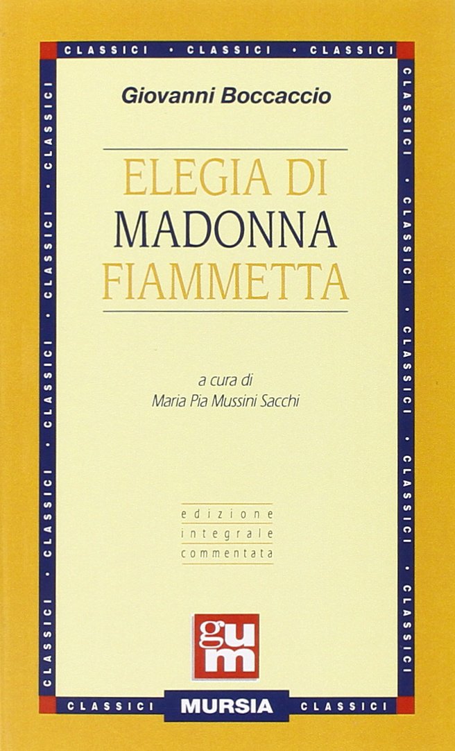 Con l'Elegia di Madonna Fiammetta, scritta nel 1343-44, il Boccaccio realizza un'opera nuova rispetto alla tradizione letteraria precedente. Fiammetta, nobildonna napoletana, andata in sposa per convenienza, conosce l'amore con uno straniero, Panfilo, mercante fiorentino che presto l'abbandona. A Fiammetta non resta che consolarsi con i ricordi e la convinzione di essere la più sfortunta amante di tutti i tempi. Il dolore la spinge a scrivere la sua storia rivolgendosi alle altre «nobili donne» che diventano via via destinatarie, ascoltatrici, complici, giudici della vicend La storia, narrata in prima persona da Fiammetta, è un genere difficile da definire: elegia e romanzo ma anchelirica e ballata.Un virtuoso esercizio di stile in cui Boccaccio dispiega le sue capacità di tratteggiare il profilo psicologico dei personaggi ma anche il grande controllo della materia letteraria, della conoscenza dei classici.