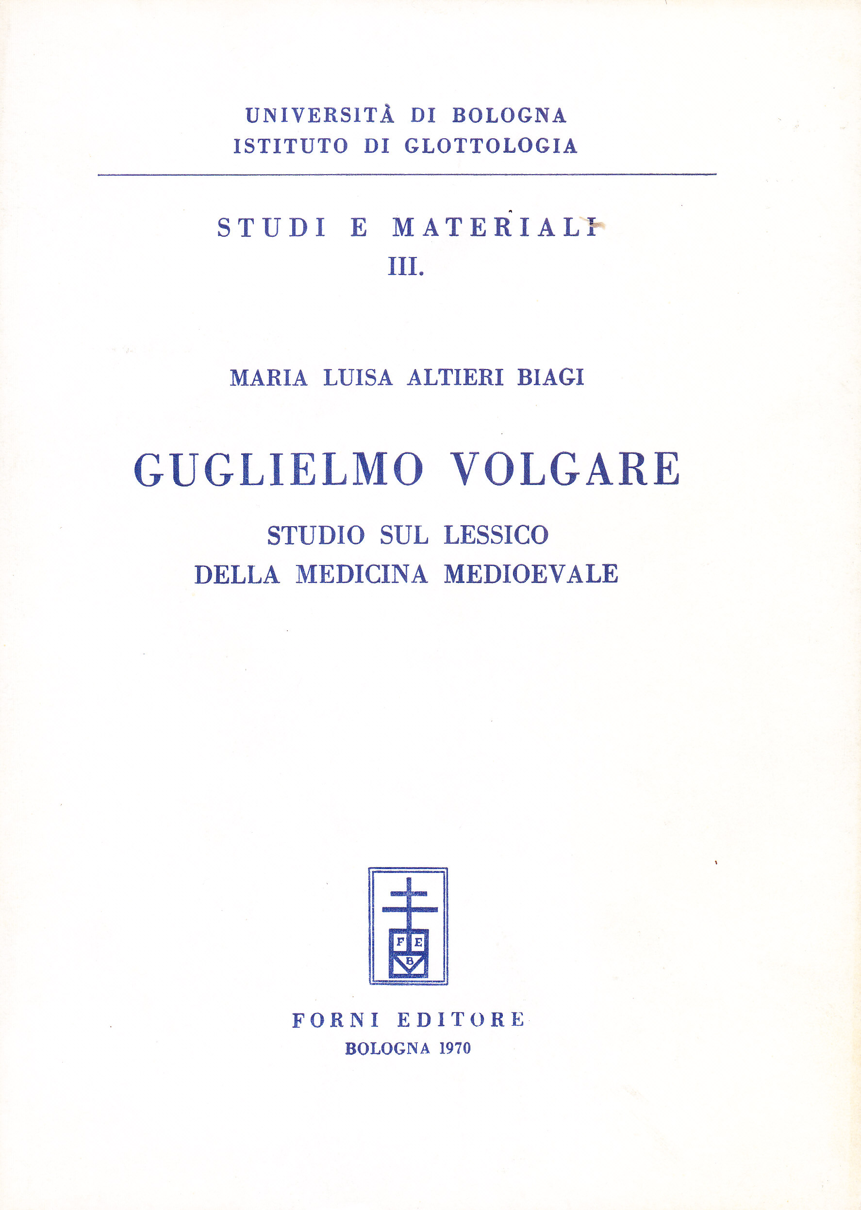 TITOLO/DENOMINAZIONE: Guglielmo Volgare. Studio sul lessico della medicina medioevale BUONE CONDIZIONI