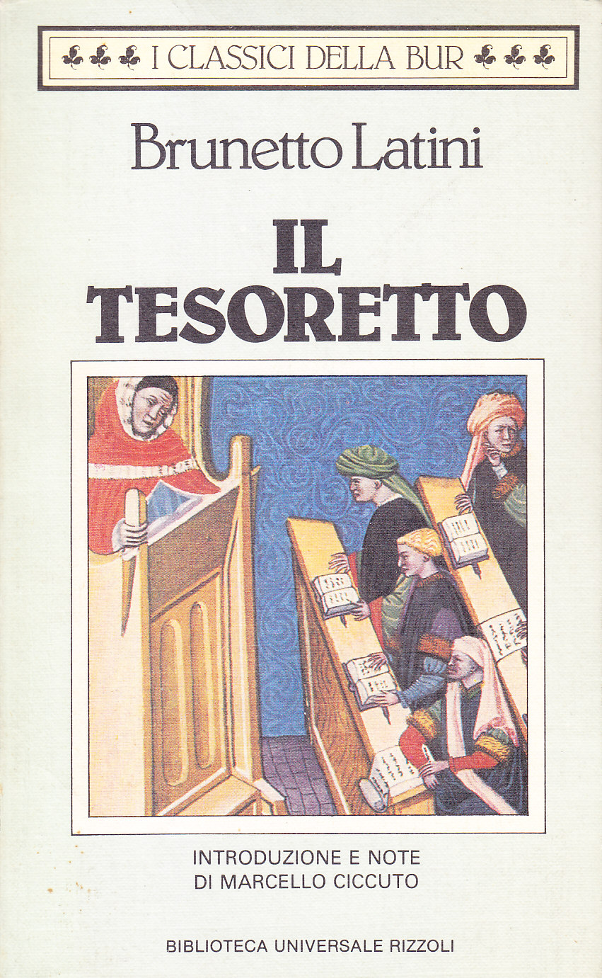 L'incessante lavoro di diffusione culturale espletato da Brunetto Latini in Firenze nella seconda metà del secolo XIII risultò decisivo all'emancipazione di un'intera "società" di dotti: già fiduciosi nella revisione del più immobile dottrinarismo teologico operata dal pensiero aristotelico, alcuni di questi intellettuali ebbero a disposizione, per mano di un Brunetto abbeverato al fonte delle disputazioni francesi, i materiali aggiornati e adatti ad elaborare una visione addirittura razionale dell'ordine cosmico. L'enciclopedico "Tesoretto" si colloca in tale prospettiva secondo la lettura che Marcello Ciccuto propone nell'introduzione. Dante stesso, che del Latini fu giovane discepolo ("Se fosse tutto pieno il mio dimando" / rispuosi lui, "voi non sareste ancora / dell'umana natura posto in bando; / ché 'n la mente m'è fitta, e or m'accora, / la cara e buona imagine paterna / di voi quando nel mondo ad ora ad ora / m'insegnavate come l'uom s'etterna.", Inf., canto XV, vv. 79-85), mostrerà poi di aver ricevuto e fatto fruttare il meglio dell'insegnamento brunettiano, e cioè l'autonomia della coscienza scientifica, prima del grande volo della "Commedia" e della diversa pena inflitta al maestro nel XV dell'"Inferno" sotto tutela di più alti valori della conoscenza.