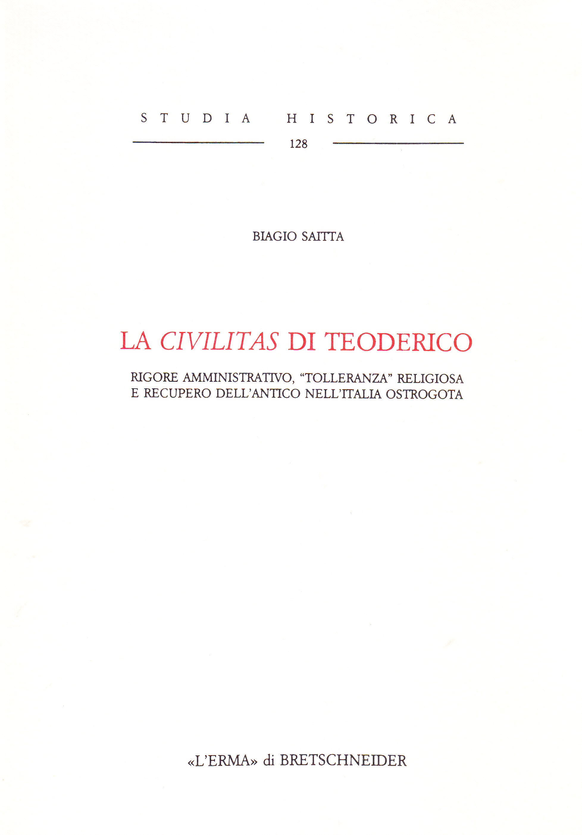 Un programma ambizioso quello di Teodorico: di civiltà e insieme di lungimiranza politica, rivolto com'era all'integrazione e alla pacifica convivenza tra Goti e Romani in Occidente, attraverso i segni inconfondibili della civilitas rintracciabili nella "tolleranza", nel rigore amministrativo, e nella forza di coesione che soltanto il diritto romano poteva assicurare.