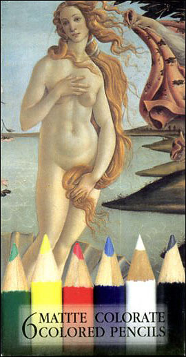 Matite colorate; sulla confezione, riproduzione della Nascita di Venere di Sandro Botticelli