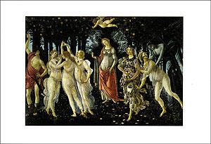 Cartolina raffigurante La Primavera di Sandro Botticelli (1482 circa), conservata presso la Galleria degli Uffizi di Firenze
