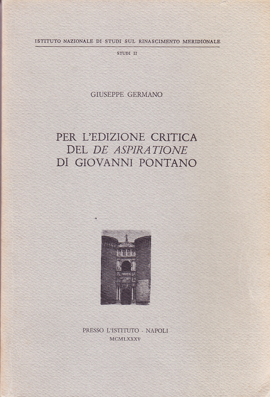 Studio sul "De aspiratione", opera di Giovanni Pontano (1429 - 1503), umanista e politico italiano.