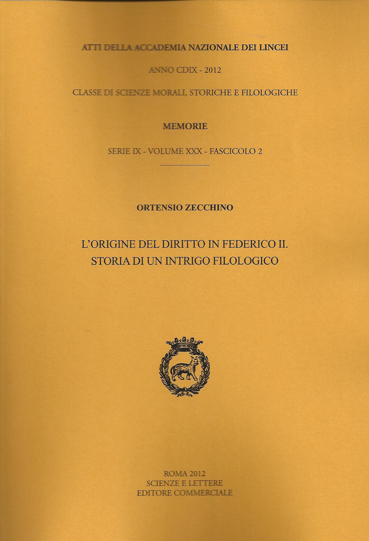I. Tre lezioni di una Novella della Costituzione di Federico II sull'origine del diritto