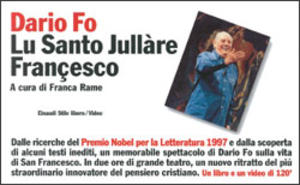 Il video: allestito con le scenografie dipinte dallo stesso Dario Fo e rappresentato al Festival dei Due Mondi di Spoleto, "Lu Santo Jullàre Francesco" è una fabulazione sulla vita del santo di Assisi che prende spunto da testi canonici e da favole popolari. Uno spettacolo in cui uno dei grandissimi del teatro italiano racconta con la consueta maestria il lato umano del santo, la personalità multiforme, il carisma e l'abilità istrionica che lo hanno reso universale patrimonio dell'umanità e non solo della Chiesa.