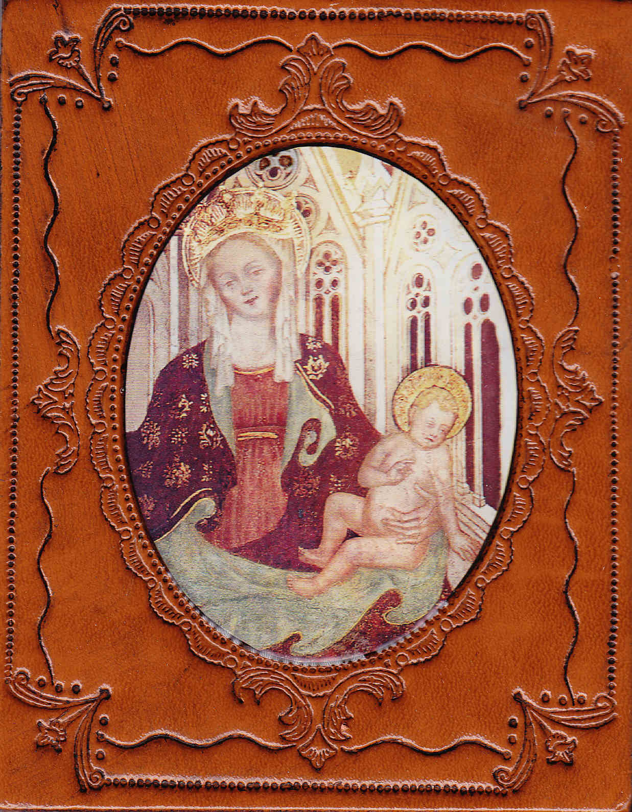 Quadretto con la riproduzione dell'affresco "Madonna con Bambino in trono" (sec. XIV), conservato nella chiesa di San Lanfranco a Pavia.