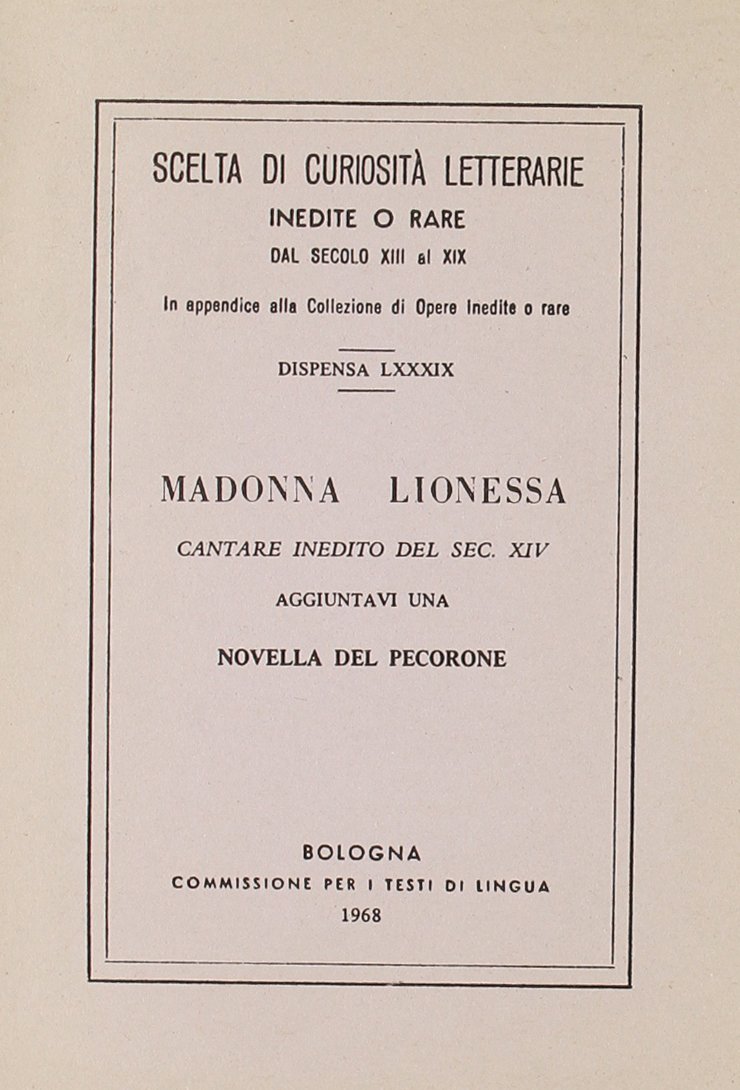 Il cantare di Madonna Lionessa reca la firma di Antonio Pucci ed è dunque databile alla seconda metà del Trecento. Narra le gesta della nobildonna Lionessa che, in assenza del marito, si dedica a campagne di conquista e gli resta fedele fino a giungere ad atti spietati.