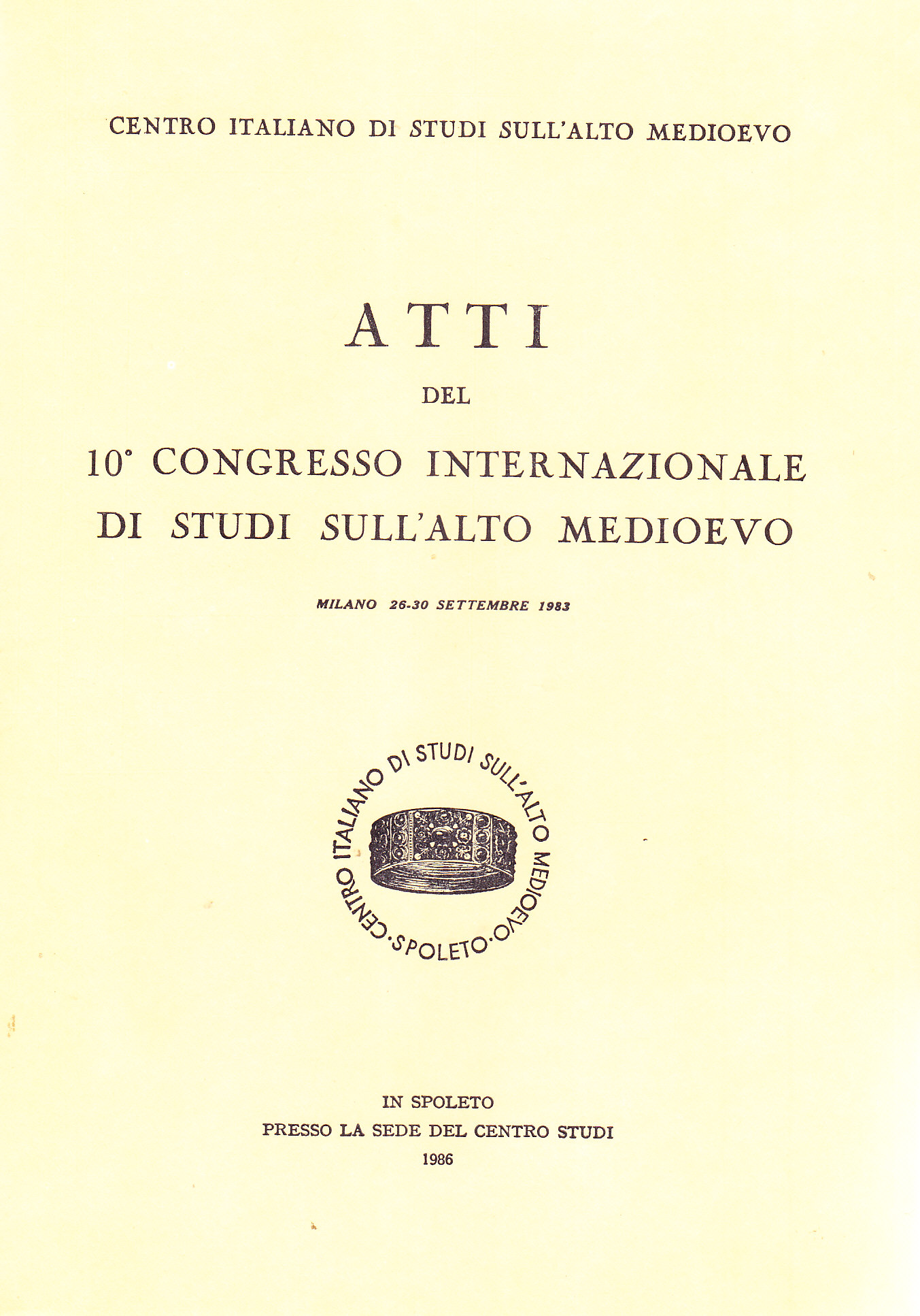 Atti del 10º Congresso Internazionale di Studi sull'Alto Medioevo (Milano, 26-30 settembre 1983)