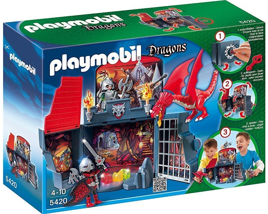 Con il set PLAYMOBIL Dragons - Scrigni - Scrigno grotta del drago - 5420, i bambini giocano immaginando incredibili battaglie. Infuria la battaglia dei cavalieri dragone! All'improvviso, un drago fiammeggiante compare in cielo… Perché è qui? Include 2 pupazzetti, 1 drago, 1 balestra funzionante e vari accessori, inclusa una cella. Lo scrigno si apre con una chiave, è richiudibile e può essere riposto facilmente.