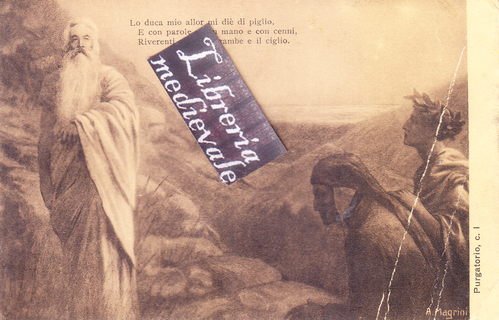 TITOLO/DENOMINAZIONE: Purgatorio, c. I. Lo duca mio allor mi diè di piglio, E con parole e con mano e con cenni, Riverenti mi fe' le gambe e il ciglio - CARTOLINA