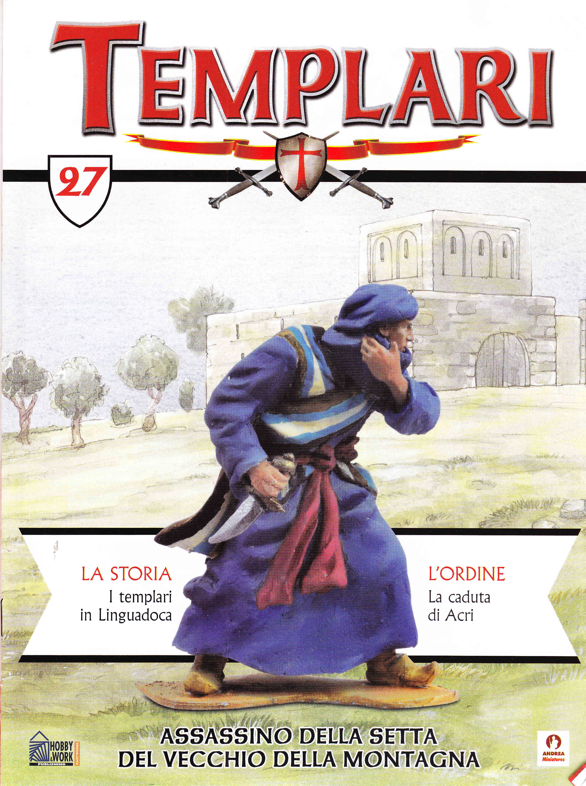 Realizzate in metallo e alte circa 65 mm. Rappresentano i Cavalieri templari e lacuni fra i più influenti protagonisti delle crociate tra il XII e il XIV secolo. Sono finemente eseguite e dipinte interamente a mano. Questa scala ha permesso di raggiungere un risultato finale caratterizzato da estremo realismo e accuratezza. Le magnifiche miniature sono opera di Andrea Miniatures, uno dei migliori produttori di figurini tridimensionali, garanzia di qualità per il mondo dei modellisti. Nei primi tre numero saranno presentati un cavaliere templare, Ugo di Payns (primo Gran Maestro dell'Ordine) e Saladino, il fondatore della dinastia degli Ayyubidi che nel 1187 cacciò i crociati cristiani da Gerusalemme.